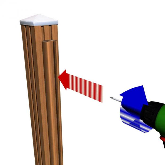 Nachdem die Pfosten mittels H-Ankern senkrecht montiert worden sind, werden die U-Leisten auf die Pfosten geschraubt. Alle Verschraubungen des Bangkirai Steckzaunsystem sollten vorgebohrt werden.