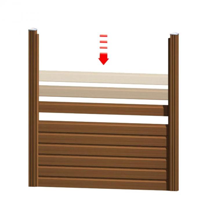Für eine saubere Montage der Aufsatzleiste, sollte das oberste Zaunbrett aus Bangkirai nach dem Entfernen der Feder circa 15 mm über die U-Leiste herausragen.
