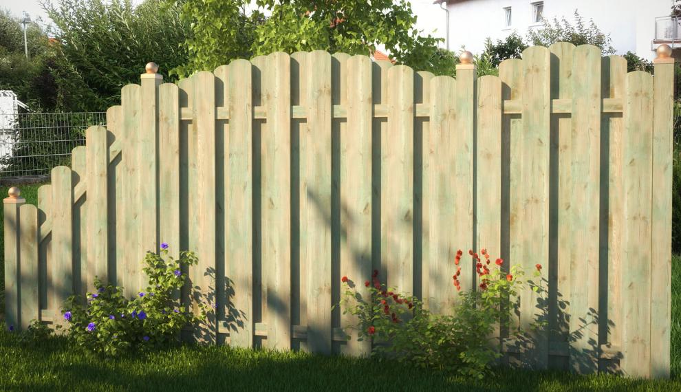 Der Bohlenzaun besteht aus senkrecht angeordneten Zaunbrettern und quer verlaufenden Querriegeln. Die werkseitige Befestigung der Zaunbretter auf den Querriegeln erfolgt durch Nagelung.