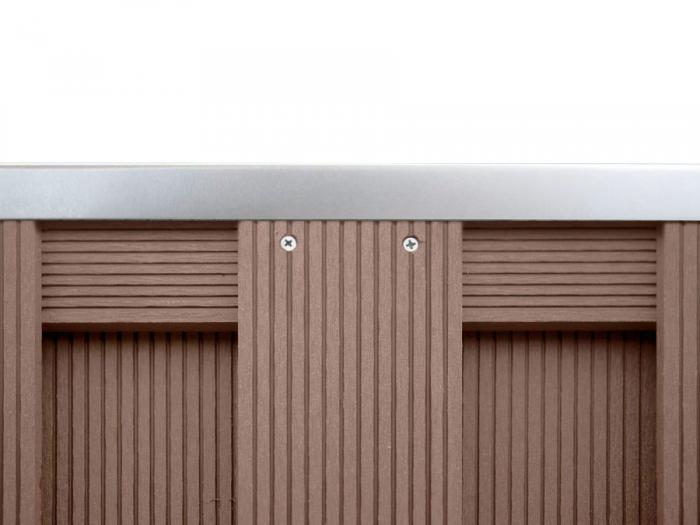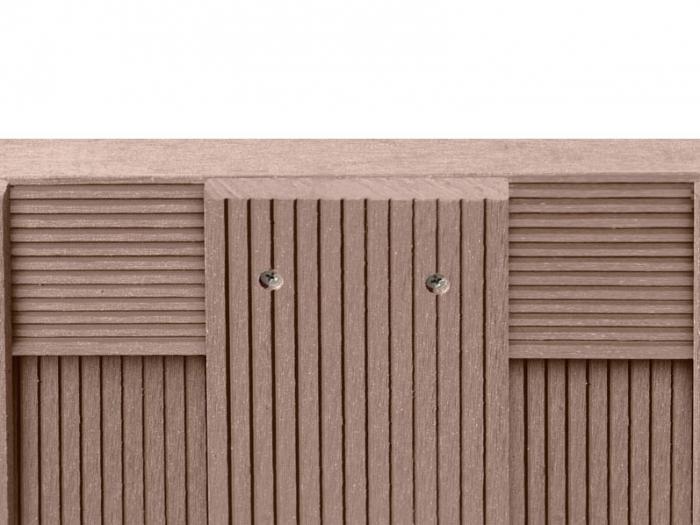 Bei den Pfosten dieser Zaunserie handelt es sich um Hohlprofile. Die gegen Aufpreis erhältliche Pfostenkappe schützt die Pfosten aus BPC vor eindringender Feuchtigkeit und Verschmutzung von oben. Der Pfosten ist zwingend auf den Schutz durch die Pfostenkappe angewiesen.