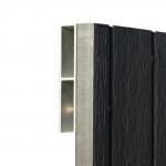 Die breiten Sichtseiten der Zaunbretter sind mit einer gebürsteten Oberfläche versehen. Die schmalen Seiten der Bretter sind hingegen glatt und von dunklerem Farbton. Dieser dunklere Farbton findet sich auch in den beiden Ziernuten auf der Breitseite des Zaunbrettes wieder.