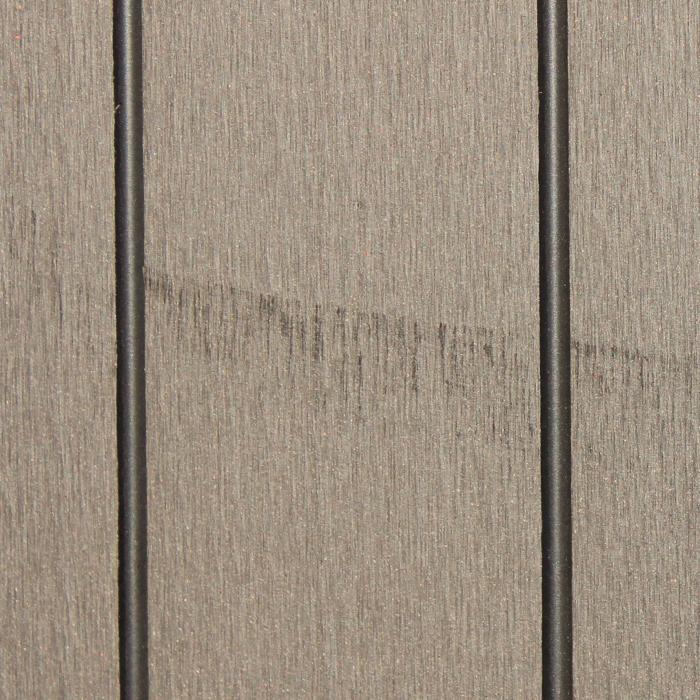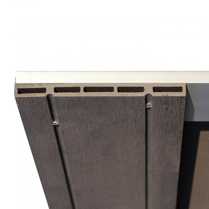 Bei den Zaunbrettern aus WPC handelt es sich um Hohlprofile. Die Sichtseite der Bretter weist zwei Ziernuten auf.