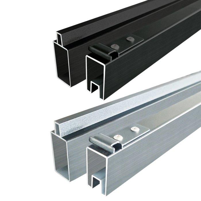 Die Zaunfeldsets sind wahlweise mit Zwischenleisten aus silbernem oder anthrazitfarbenem Aluminium erhältlich. Die Pfosten gibt es ebenfalls in beiden Ausführungen.