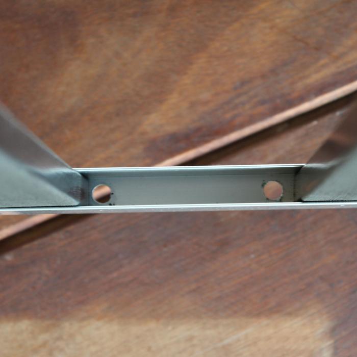 Die Elephant-Vorgartenzäune dieser Serie sind oben und unten mit einem Rahmen aus Aluminium versehen. Zur Vermeidung von Staunässe weist der untere Rahmen Öffnungen für den Wasserablauf auf. Bei den Öffnungen im Zaunrahmen kann es sich um die abgebildeten runden Öffnungen oder um Langlöcher handeln.