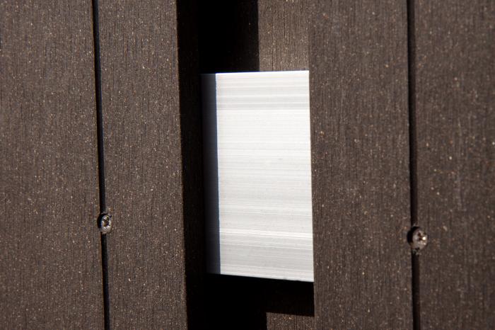 Die Befestigung der Zaunelemente Solid an den Metallpfosten mit WPC-Mantel erfolgt mittels der speziellen Winkelbeschläge aus Edelstahl. Für jedes Zaunelement werden dabei vier Winkel pro Seite, also insgesamt acht Winkel benötigt. Dem GrojaSolid
