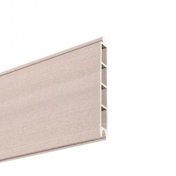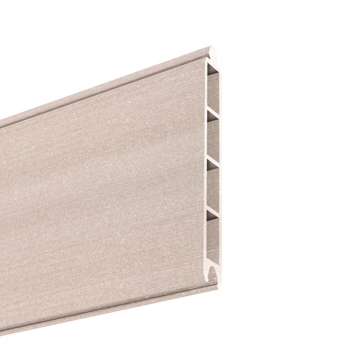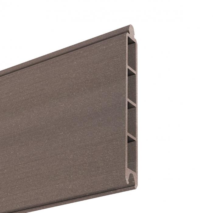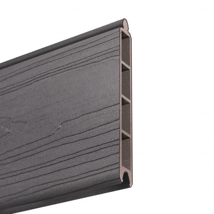 Bei den Profilbrettern handelt es sich um Hohlprofile aus BPC mit einer Stärke von ca. 19mm. Die Bretter in den Designs Anthrazit, Terra und BiColor weiß bestehen komplett aus BPC. Bei den Designs Steingrau und Walnuss wurden die Bretter zusätzlich mit einer gemaserten Kunststoffummantelung versehen.