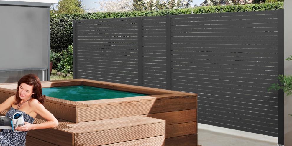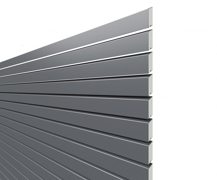Die Profile des Zaunsystems Rhombus bestehen aus pulverbeschichtetem Metall. Diese Hohlprofile sind werkseitig ausgeschäumt. Als Farbvarianten stehen die Farbtöne Anthrazit, Silber und Lärche zur Auswahl.