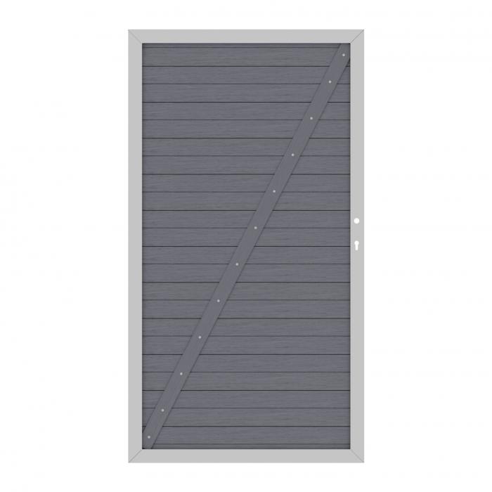 Die Tore für die Zaunserie System WPC sind mit einem stabilen, silber- oder anthrazitfarbenen Metallrahmen ausgestattet. Zur Aussteifung des Tores ist eine WPC Lamelle quer über die Füllung des Tores geschraubt.