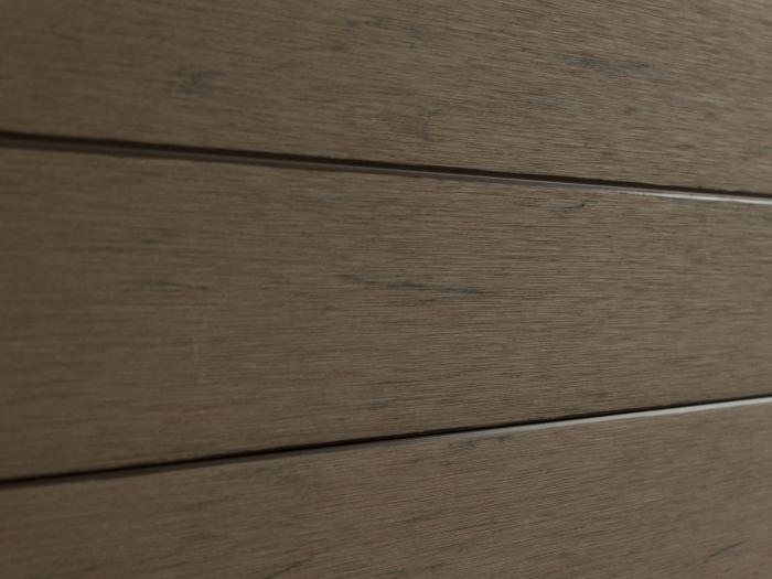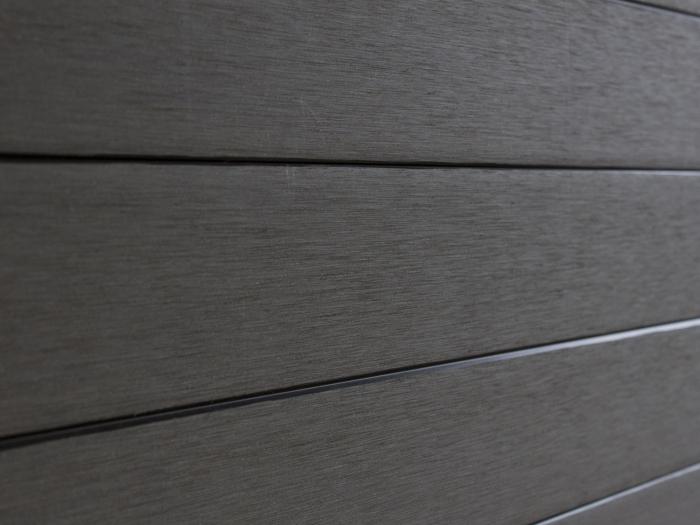 Die Oberfläche der Zaunfüllungen aus der Serie System-WPC weist eine fein gebürstete Struktur auf. Diese gebürstete Struktur verleiht dem WPC eine natürliche Optik. Die Zaunfüllungen werden durch kleine V-Fugen optisch in schmale Bretter unterteilt. Die V-Fugen werden durch den etwas intensiveren Farbton betont.