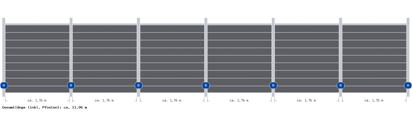 11,06m Steckzaun WPC-Alu Modular Steingrau/Silber - 2 Meter hoch