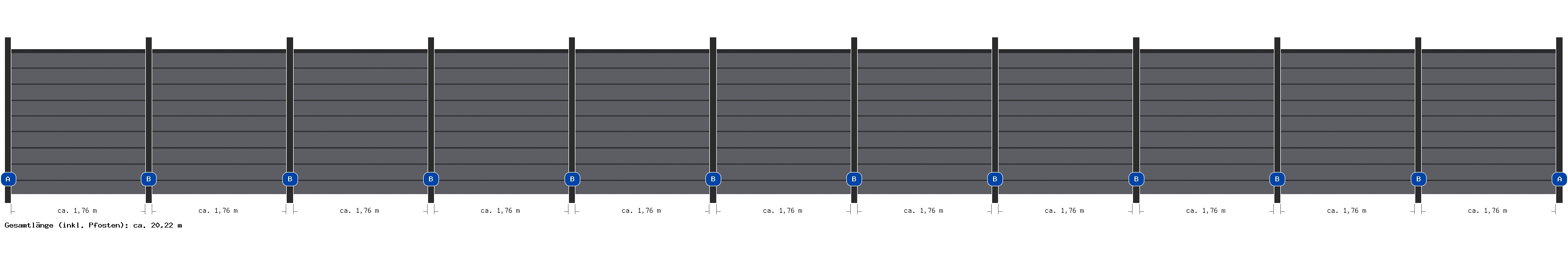 20,22m Steckzaun WPC-Alu Modular Steingrau/Anthrazit - 2 Meter hoch