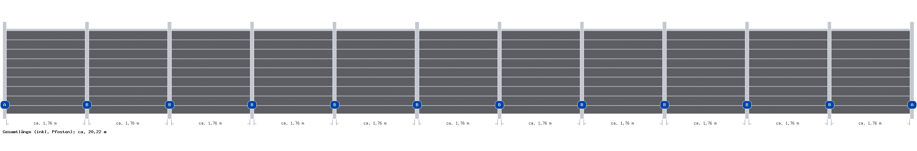 20,22m Steckzaun WPC-Alu Modular Steingrau/Silber - 2 Meter hoch