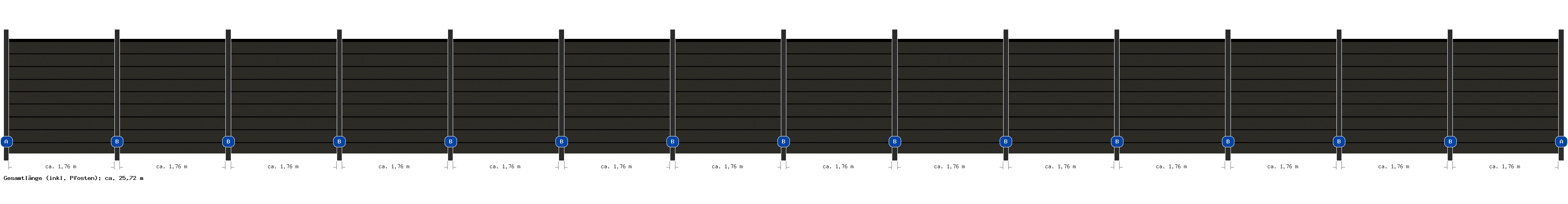 25,72m Steckzaun WPC-Alu Modular Anthrazit/Anthrazit - 2 Meter hoch