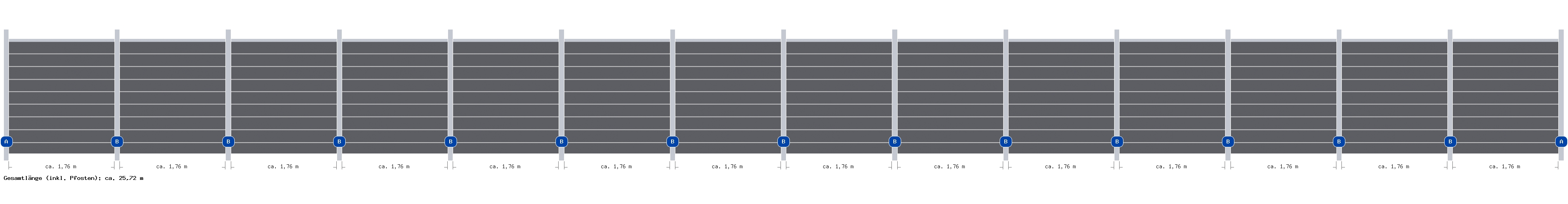 25,72m Steckzaun WPC-Alu Modular Steingrau/Silber - 2 Meter hoch