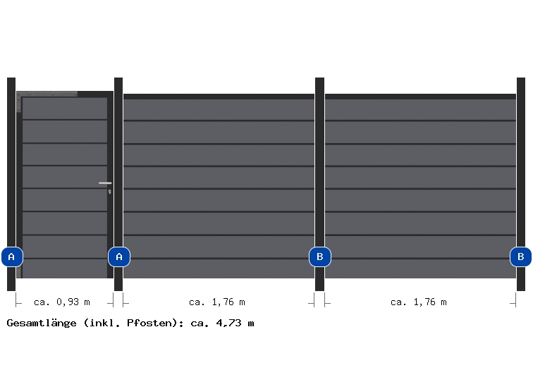 Übersicht der gesamten Zaunanlage Nehmen Sie aufgrund der hier im Planer angegebenen Maße keine Fundamentarbeiten vor! Vorrang vor den hier angegeben Maßen haben die Angaben in der Montageanleitung .