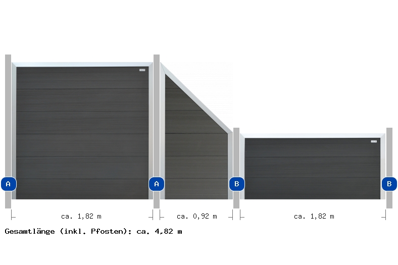 4,82m Elephant Forte WPC anthrazit-Rahmen Alu Zaunreihe- ME62229
