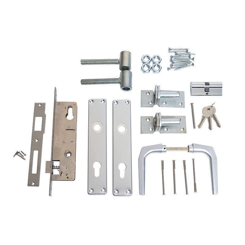 Im Lieferumfang des Beschlagsatzes Elephant Country ist alles, was zur Installation Ihrer Gartenpforte nötig ist, enthalten. Dies beinhaltet die Türbänder, die Türklinke, drei Schlüssel und einen Profilzylinder. So sind Sie bestens ausgestattet, um Ihr Elephant Country Gartentor fachgerecht und sicher anzubringen.