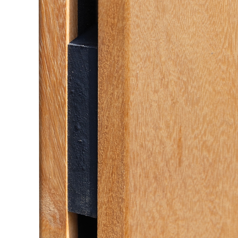 Doppelseitig mit schwarzem Träger und schwarz lackierter Rückseite der Bretter