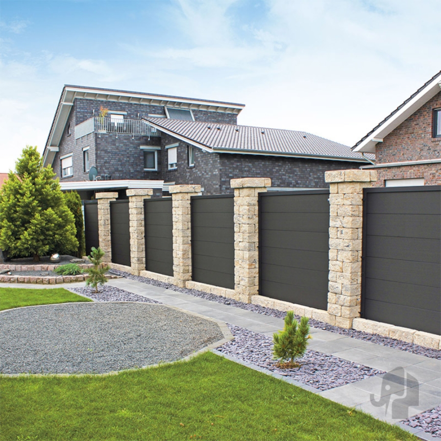 Die Besonderheit dieses Sichtschutzzauns liegt in seinem Aluminium-Rahmen, der für zusätzliche Stabilität und eine lange Lebensdauer sorgt. Der Rahmen ist pulverbeschichtet, während die Füllung aus einer Mischung von Holz und Kunststoff besteht, was dem Zaun eine natürliche Ausstrahlung bei gleichzeitiger Strapazierfähigkeit und geringem Pflegeaufwand verleiht.