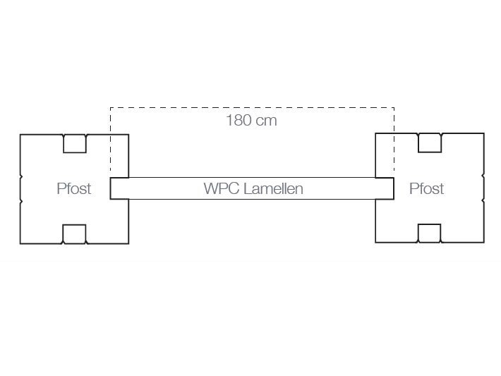 9 x WPC Lamellen, 2 x anodisierte Alu-Abdeckleisten, 8 x anodisierter Alu-Mittelleisten