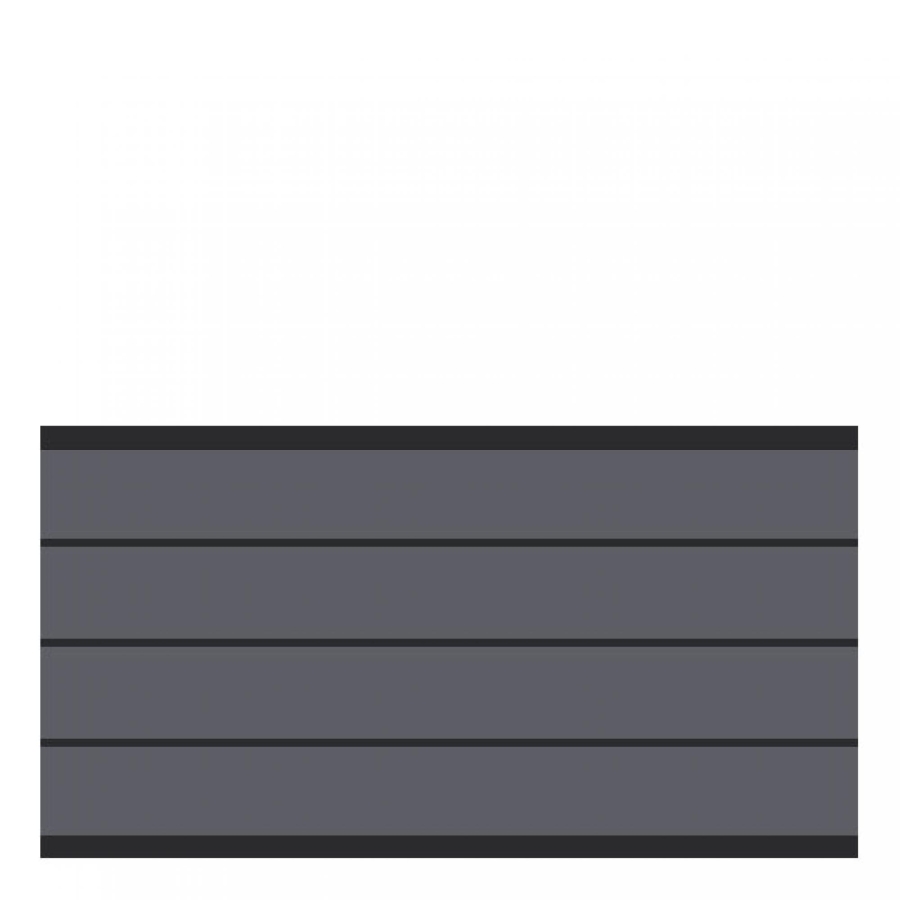 2 x anthrazit pulverbeschichtete Alu-Abdeckleisten, 4 x WPC Lamellen, 3 x anthrazit pulverbeschichtete Alu-Mittelleisten