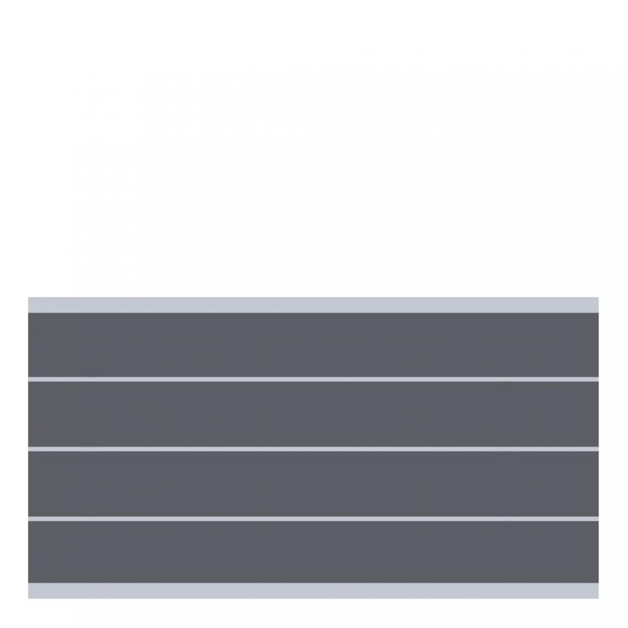 Der Zaun präsentiert sich mit einer Ausfüllung in einem ansprechenden WPC in Steingrau, das für eine dezente und zugleich edle Ausstrahlung sorgt und sich nahtlos in diverse Gartenumgebungen einfügt. Die Aluminiumstreifen in anodisierter Silberoptik bieten einen eleganten Farbkontrast.